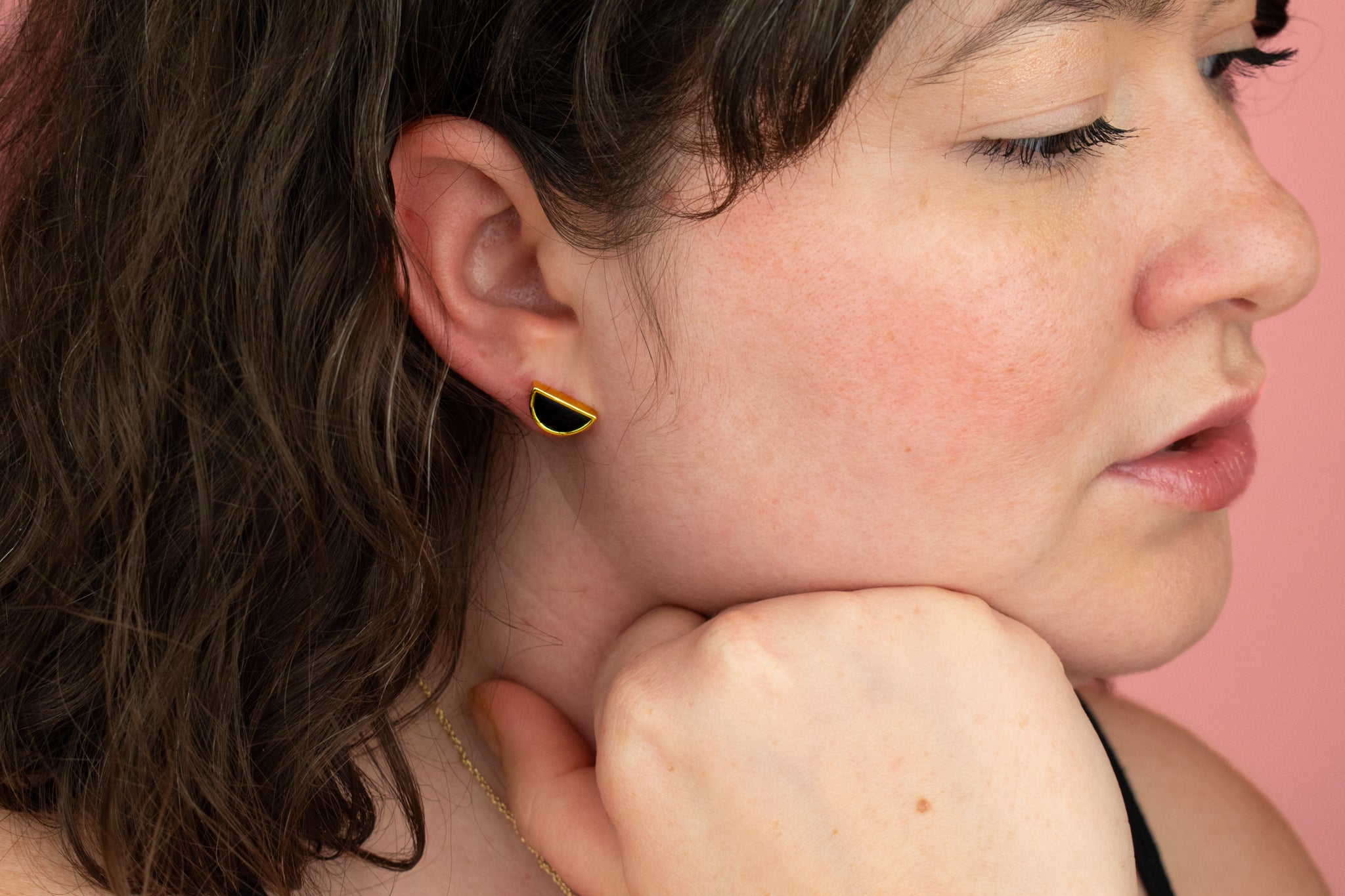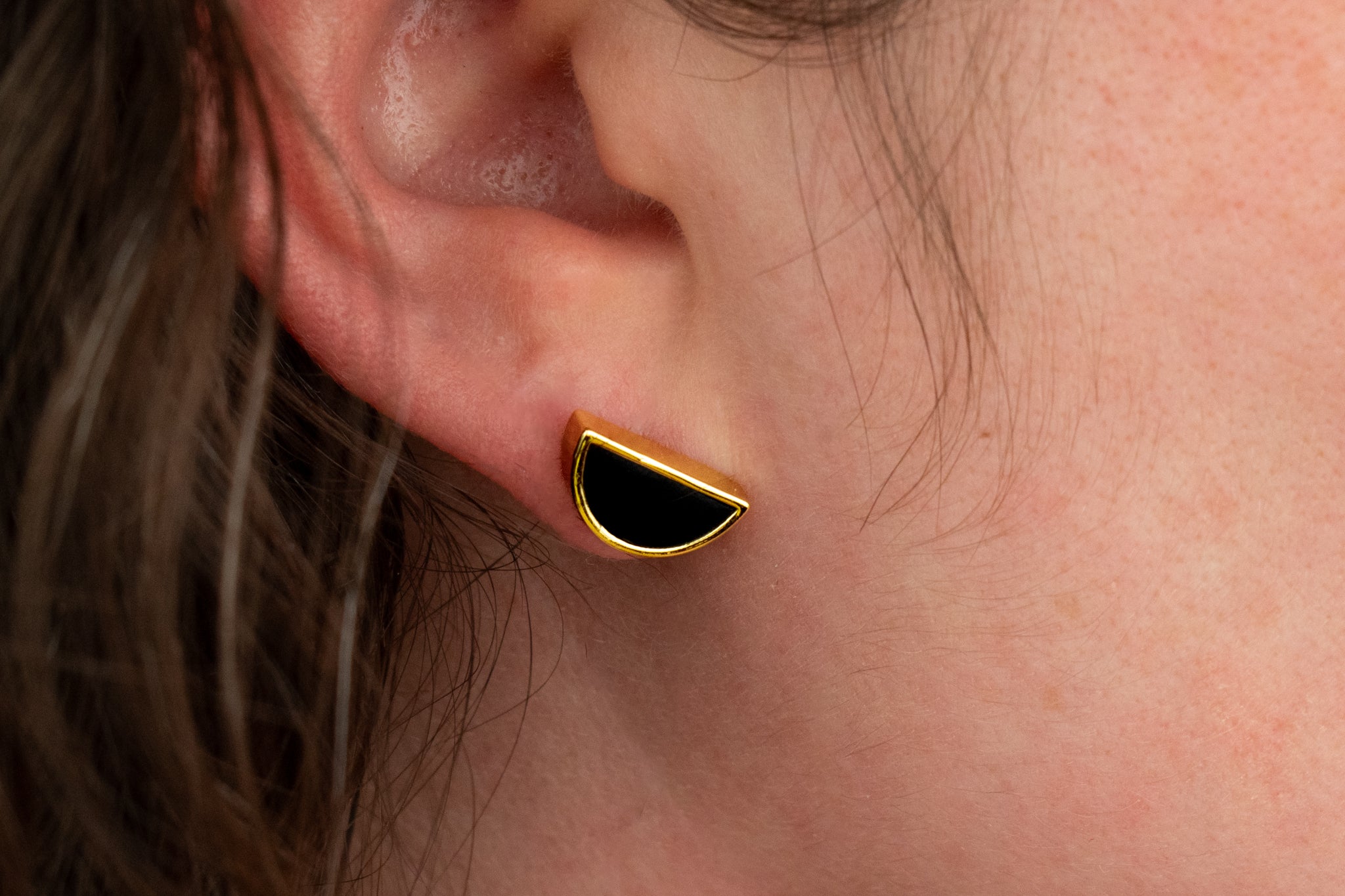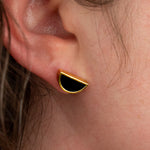 Half Moon Stud Earrings in 14k Gold and Black Clay