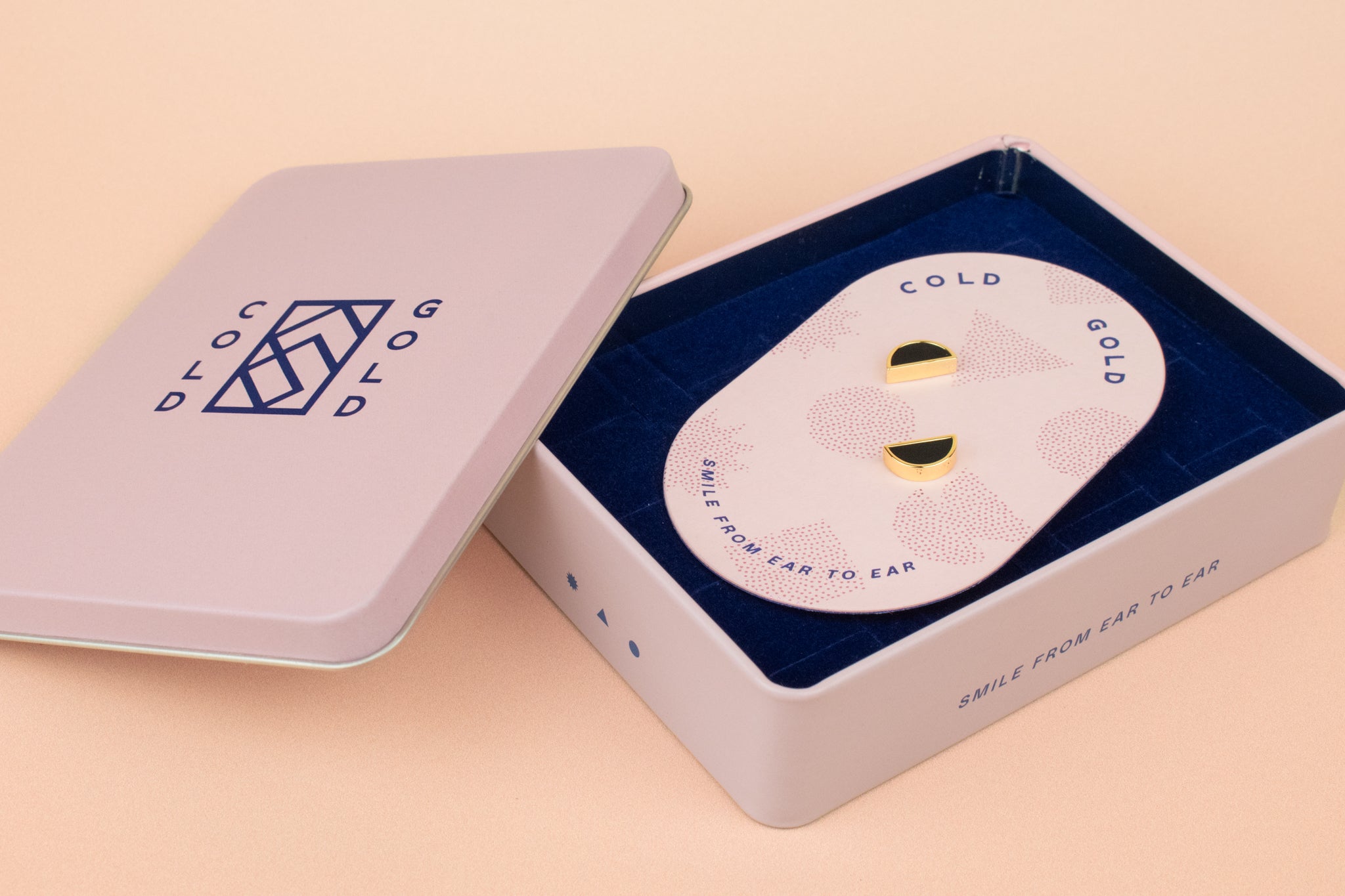 Cleaning: If desired, polish your Geo Studs with a microfiber cloth for extra shine. Note that you should stay away from using jewelry cleaners or harsh chemicals, as they could wear away the gold-plated finish.