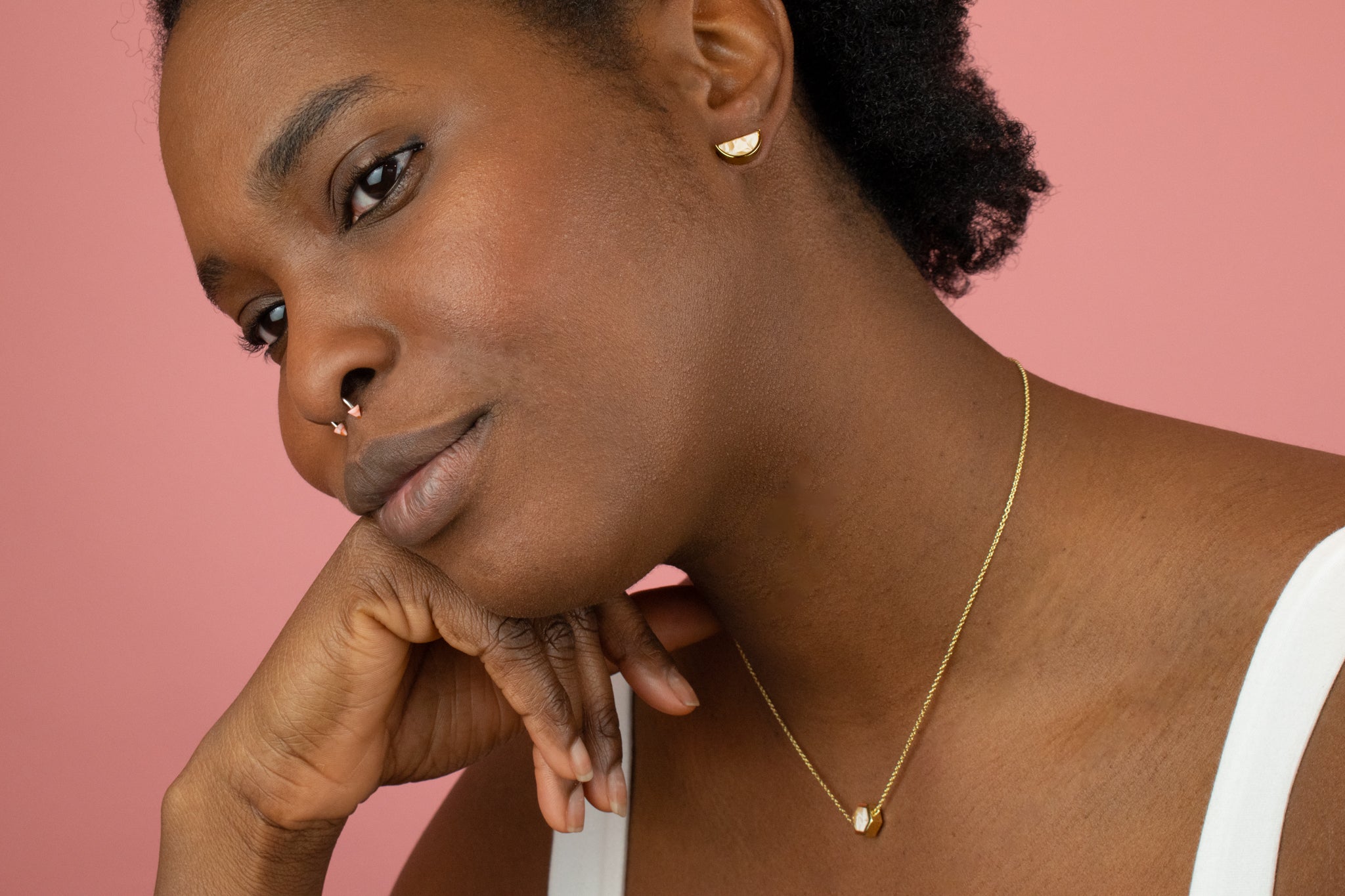 Not all gold plating is equal. We plate our jewelry with 14k gold that is 1 micron thick (20x thicker than most gold plating). From the shape, to the post, to the butterfly back, we'll use your choice of brass or 925 sterling silver base metal to create a beautiful, durable piece of jewelry that will last for years to come. The look and feel of solid gold at a fraction of the price? Yes please.