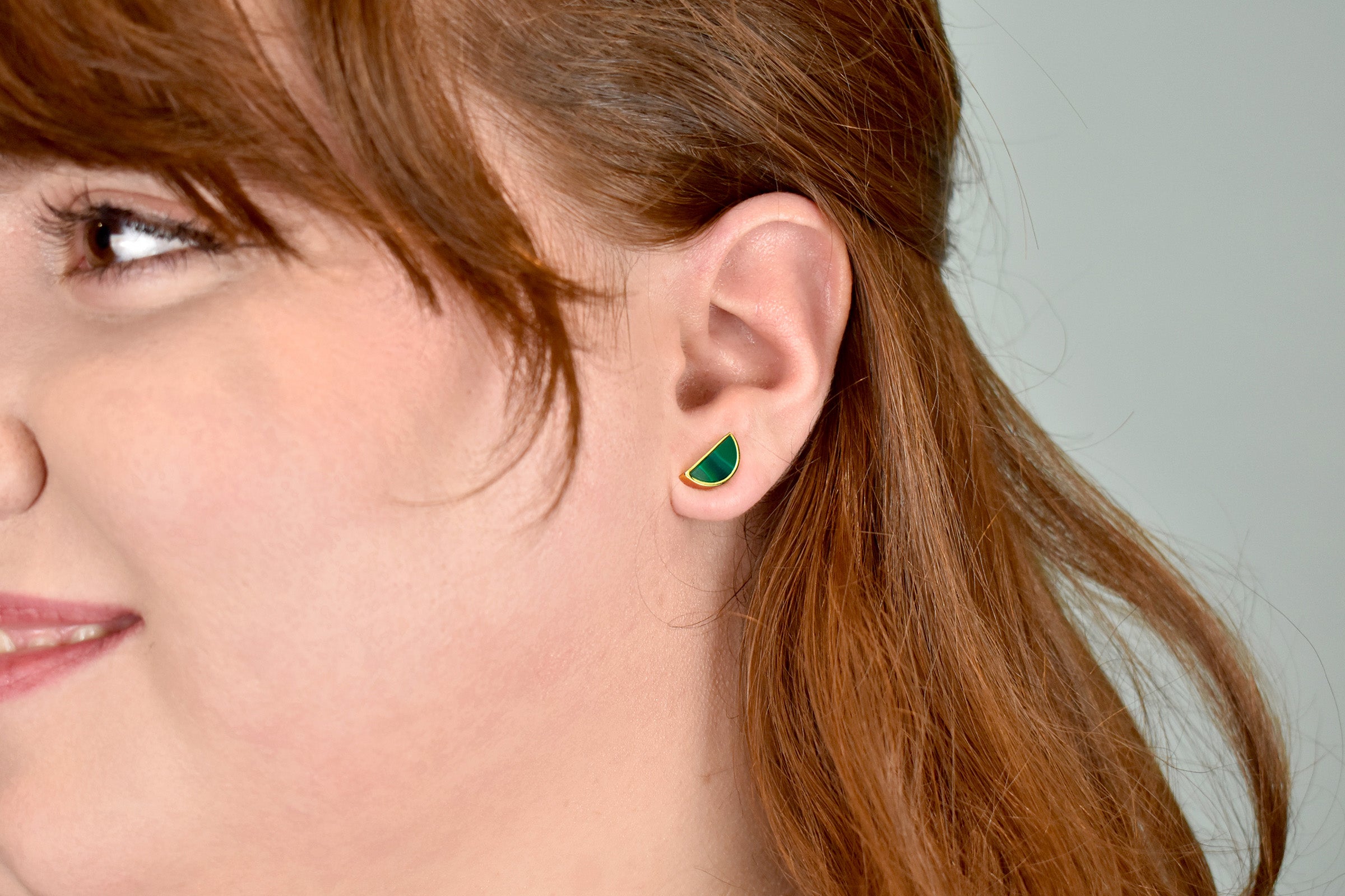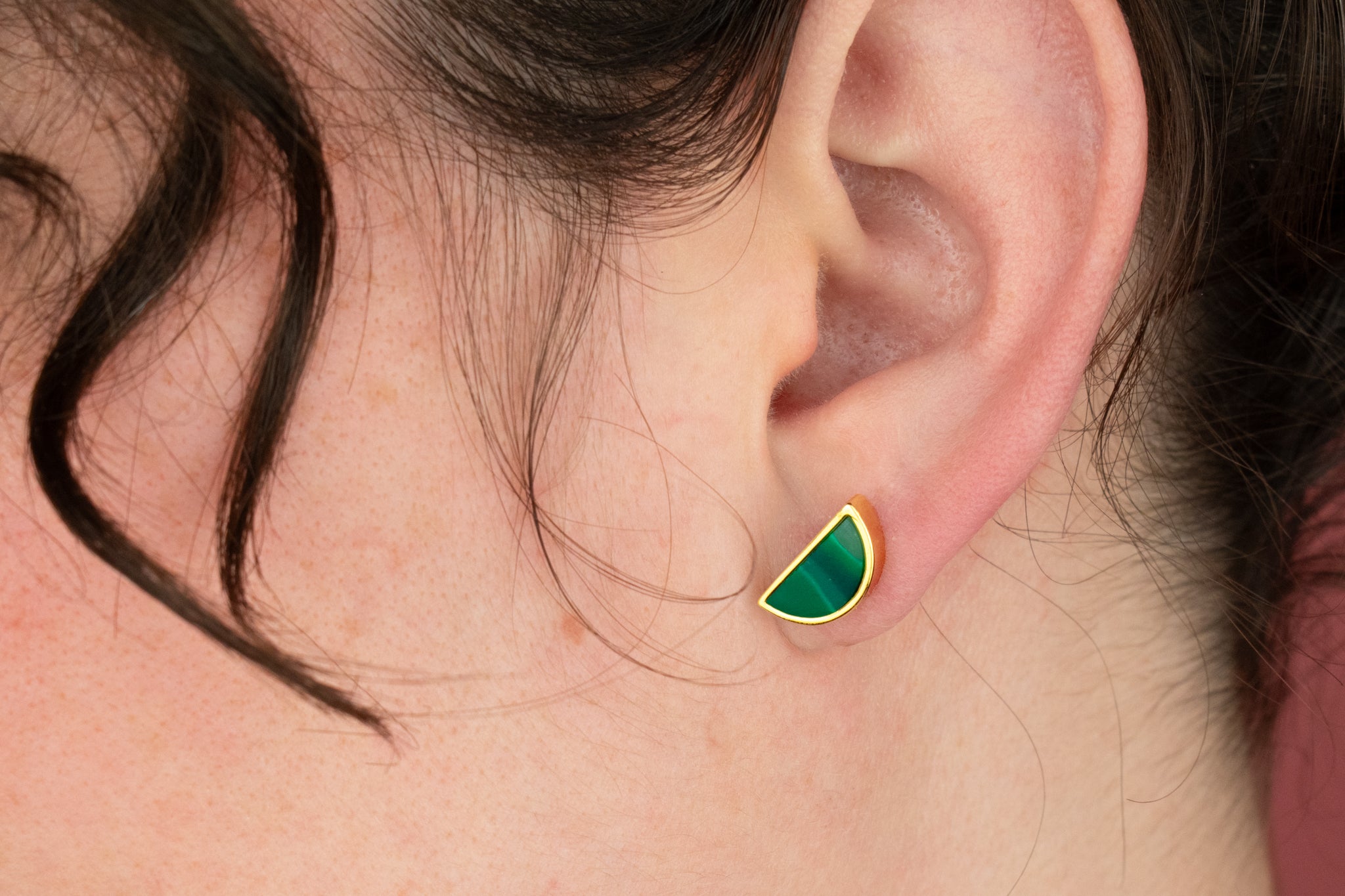 Geometric Stud Earring Set with Emerald Clay and Gold Half Moons