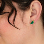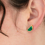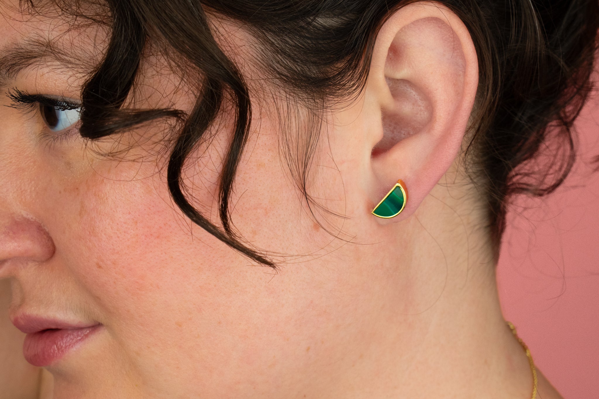 Moody jewel tones are always a win, and with the gold stud earrings in emerald clay, you're bringing home the gold. The rich emerald color is made by folding bright kelly green clay with deep, transparent forest green for a finish that resembled real gemstone.