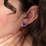 Gold Triangle Stud Earring Set with Sapphire Clay and 14k Gold
