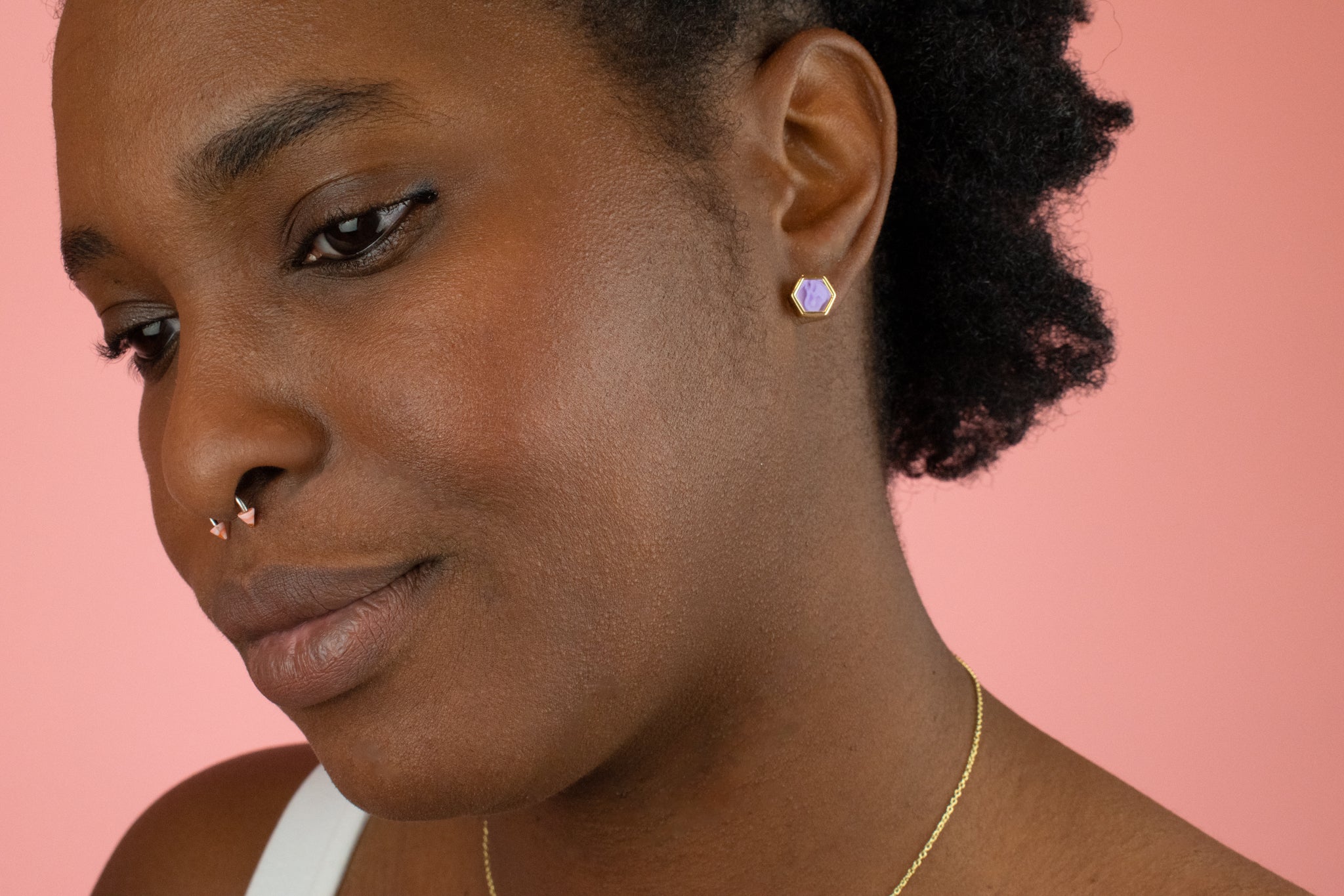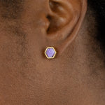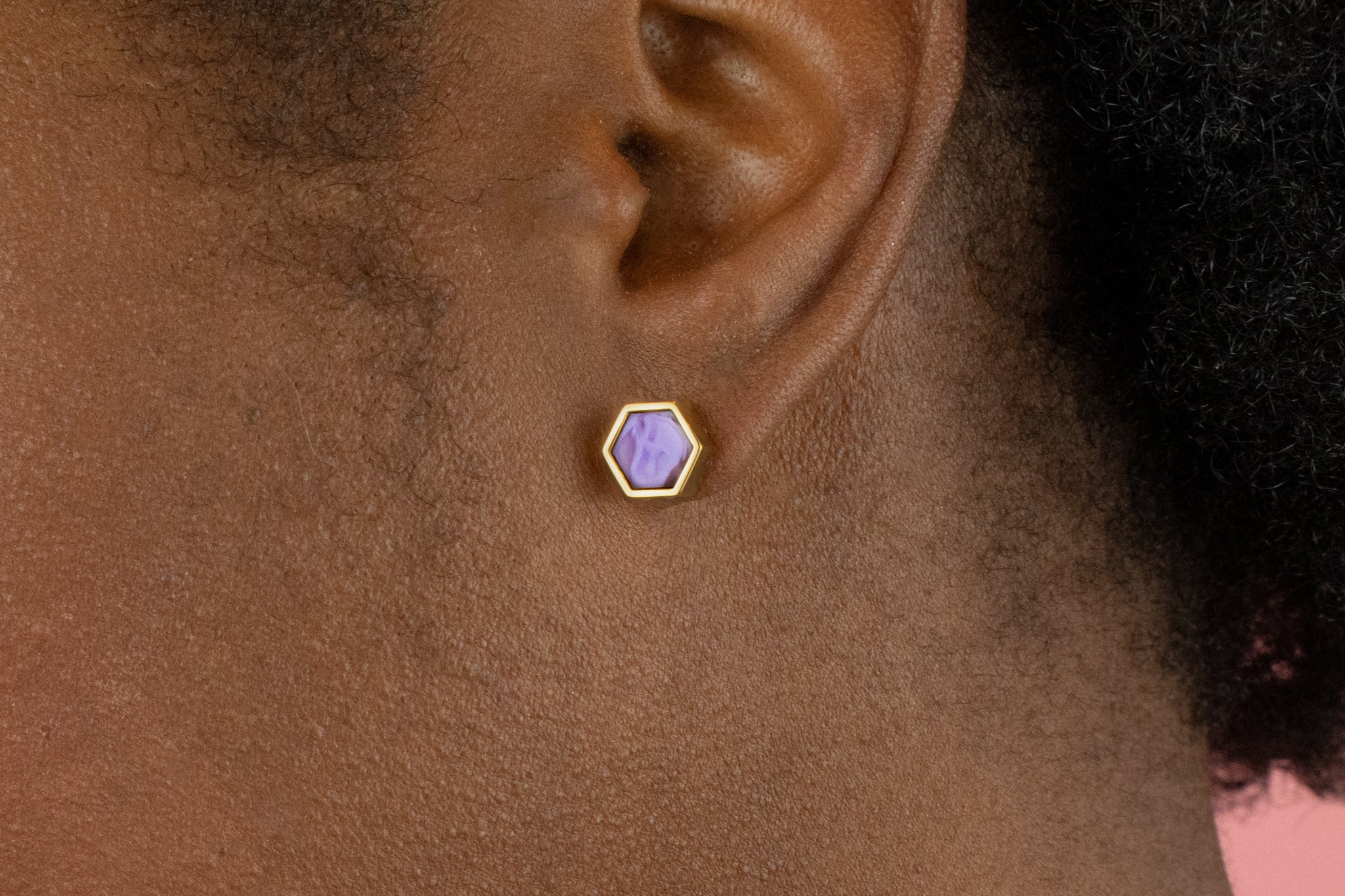 Hexagon Stud Earring Set with Amethyst Clay and Gold