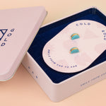 Storage: We recommend storing your earrings in a cool dry place, like a jewelry box, an earring stand, or a dresser drawer. (The tin these came in works great, too.)