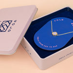 Storage: We recommend storing your 14k gold necklace in a cool dry place, like a jewelry box or a dresser drawer. (The tin this came in works great, too.)