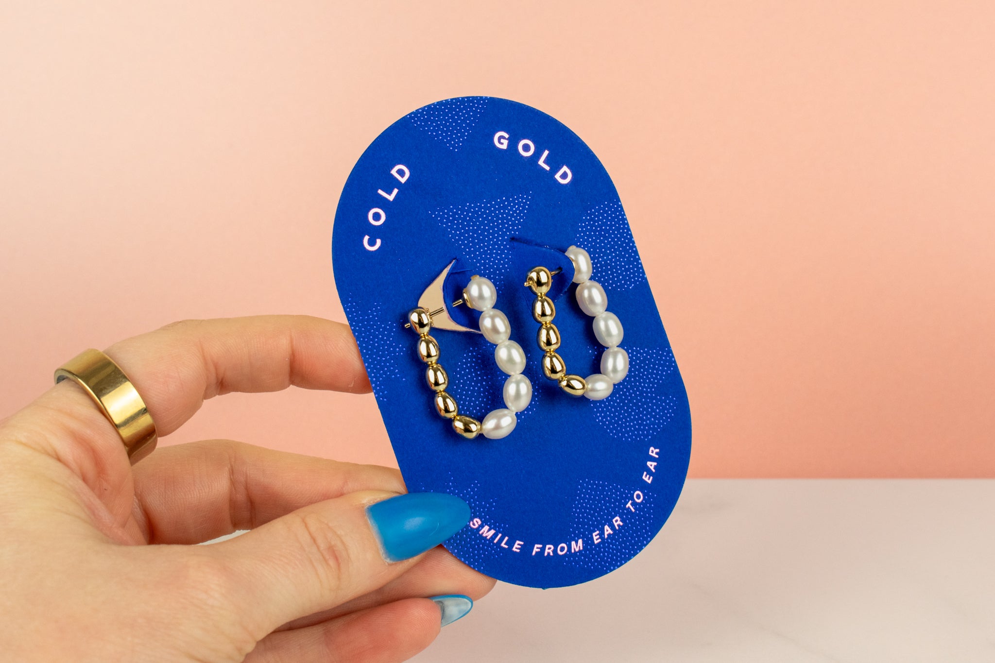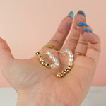 As the Roman goddess of love and beauty, Venus is exactly who you’ll be channeling when you wear these baroque pearl hoop earrings. Stately yet young, these dangly pearl earrings combine classic materials with a modern design – and their design holds a surprise. For added versatility, you can wear these pearl earrings long and dangly or loop the bottom, gold pearl back to turn them into an elegant pearl hoop. Finished with real freshwater pearls, a thick layer of 14k gold plating, and sterling silver posts, these fine pearl earrings are the finishing touch on your chic wardrobe.
