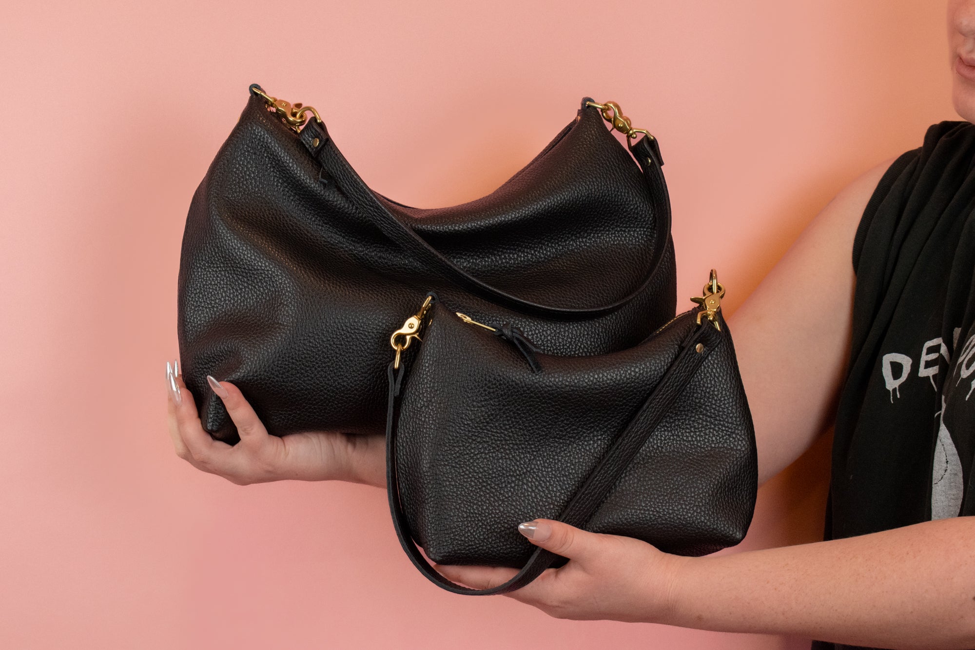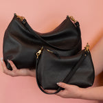 - Convertible design: wear as a slim shoulder bag, a slouchy crescent handbag, or a wristlet