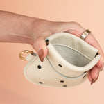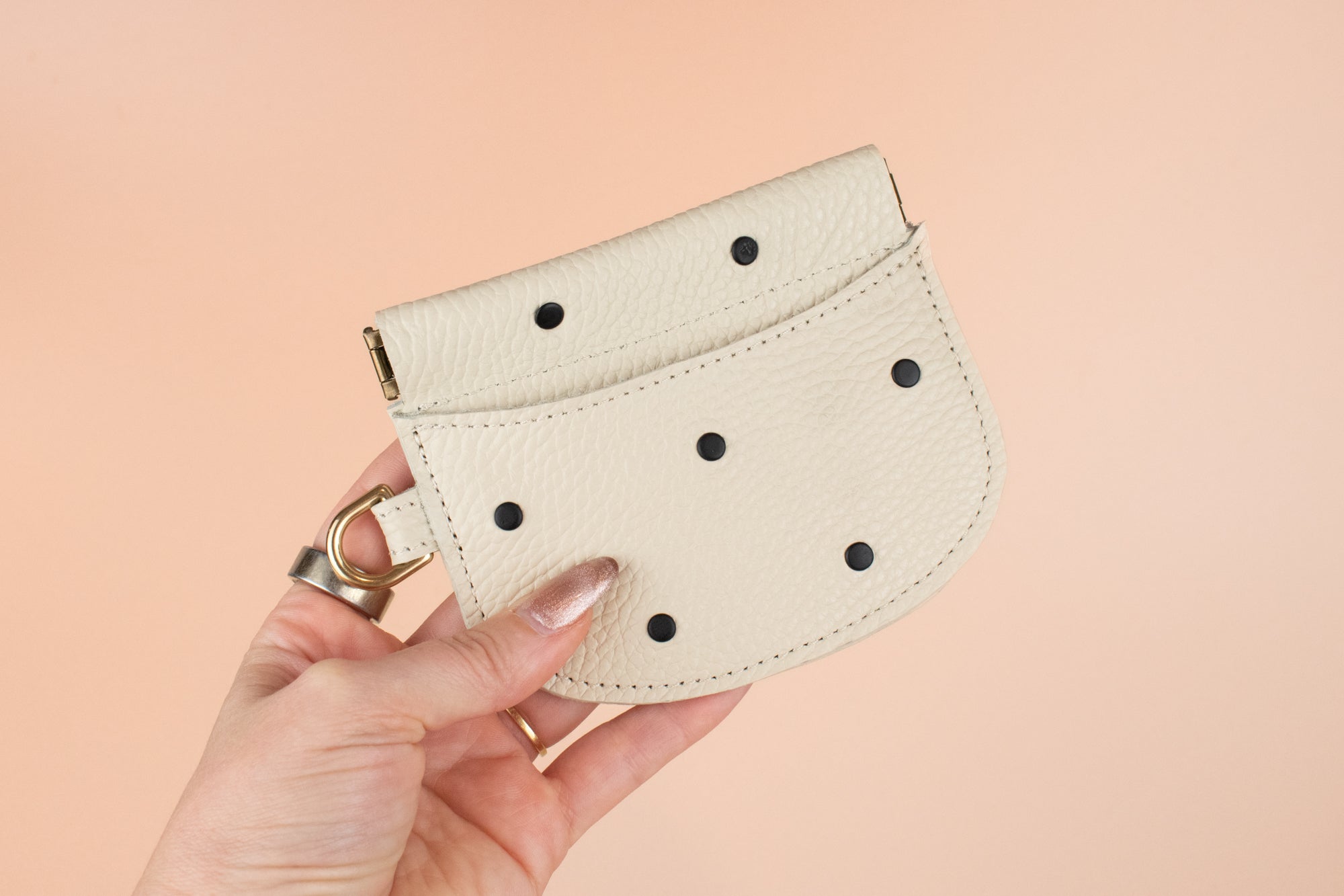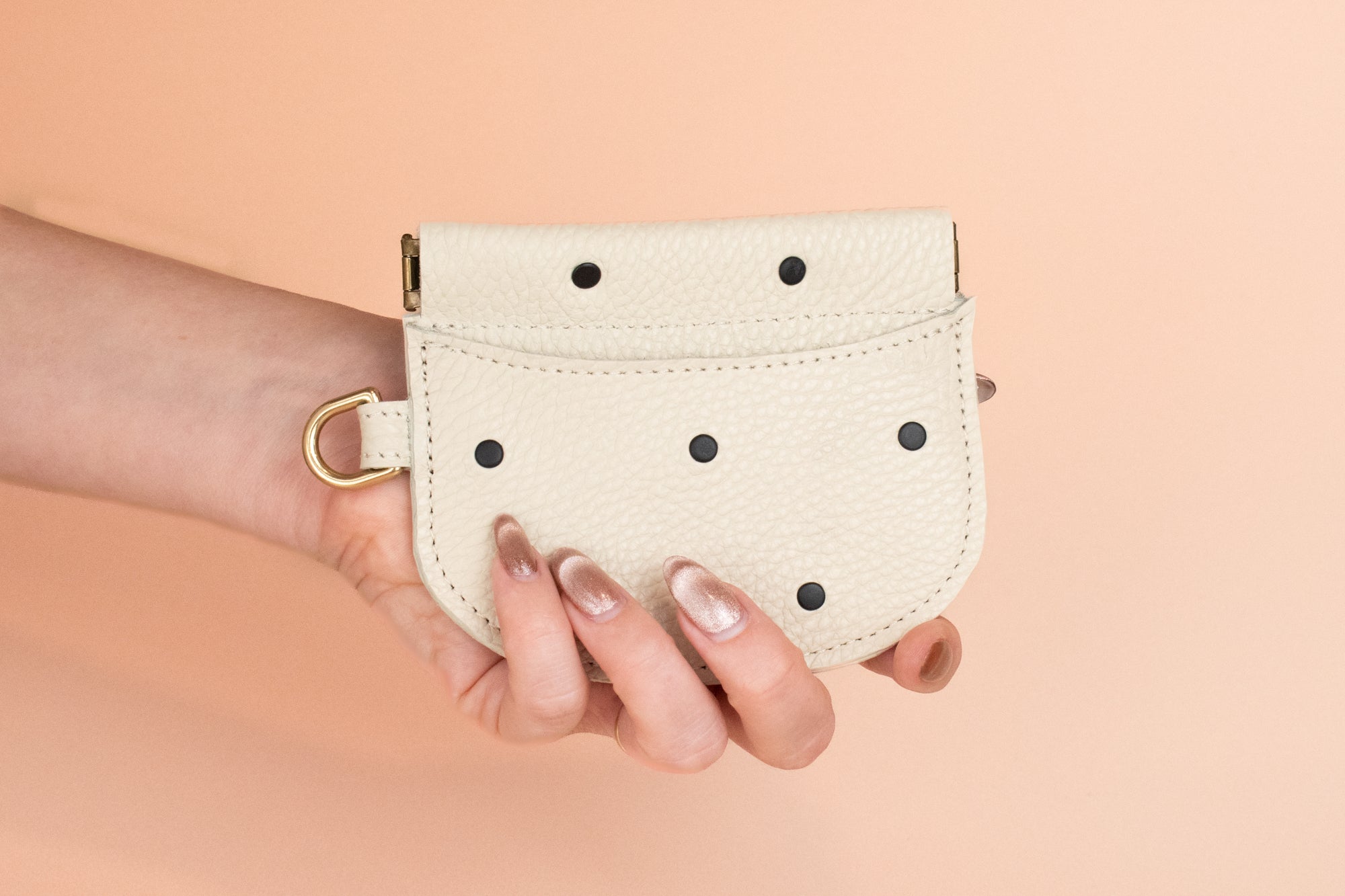 Tiny purse? Back pocket? Hands free? Our Pop Card Wallet works for all of these! Carry this leather card wallet in your tiniest bag or attach a wristlet and go hands free. It has a front pocket that is perfect for your most reached-for cards and an interior compartment that fits cards, cash, coins, and even a lip balm or a tampon. The squeeze-snap pops open easily, but closes tightly to keep your small things secure. There's no losing your valuables on our watch!