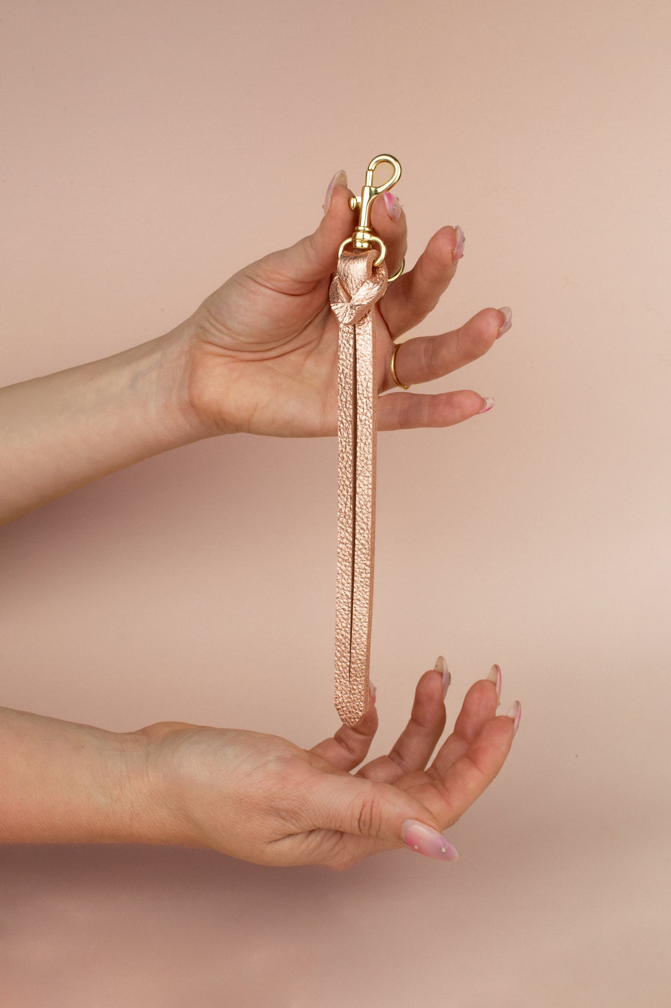 The Knot Keychain: A Leather Wristlet Keychain in Rose Gold