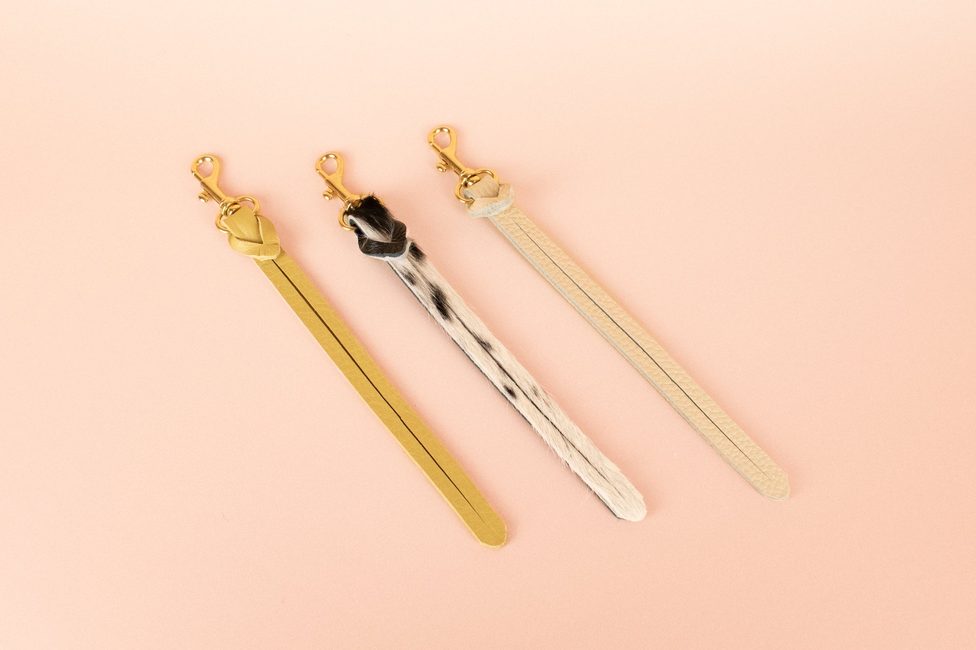 Our colorful wrist strap key chain is minimal, modern, and features medium-weight authentic leather, giving it the perfect balance of softness, flexibility, and durability. Designed with all body types in mind, it's cut to fit all wrist sizes. Each one is carefully finished with a polished brass swivel clasp to keep you stylishly organized no matter how far you roam. A simple keychain that pulls double duty as a cute accessory? Yes, please. Toss it in your bag, wear it like a bracelet, or clip it to a belt loop and you're off to see the world.