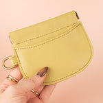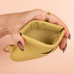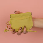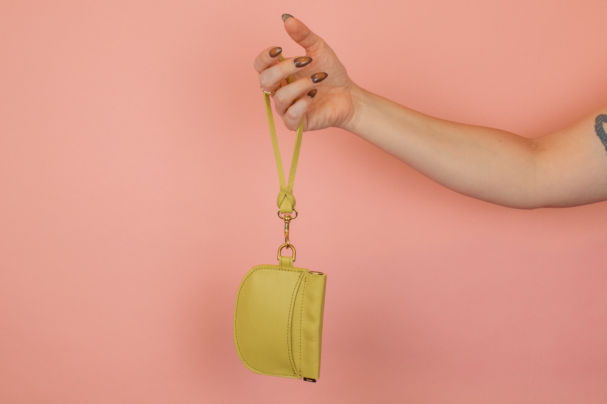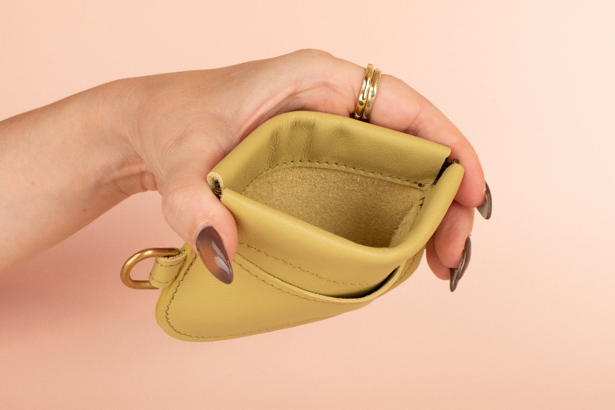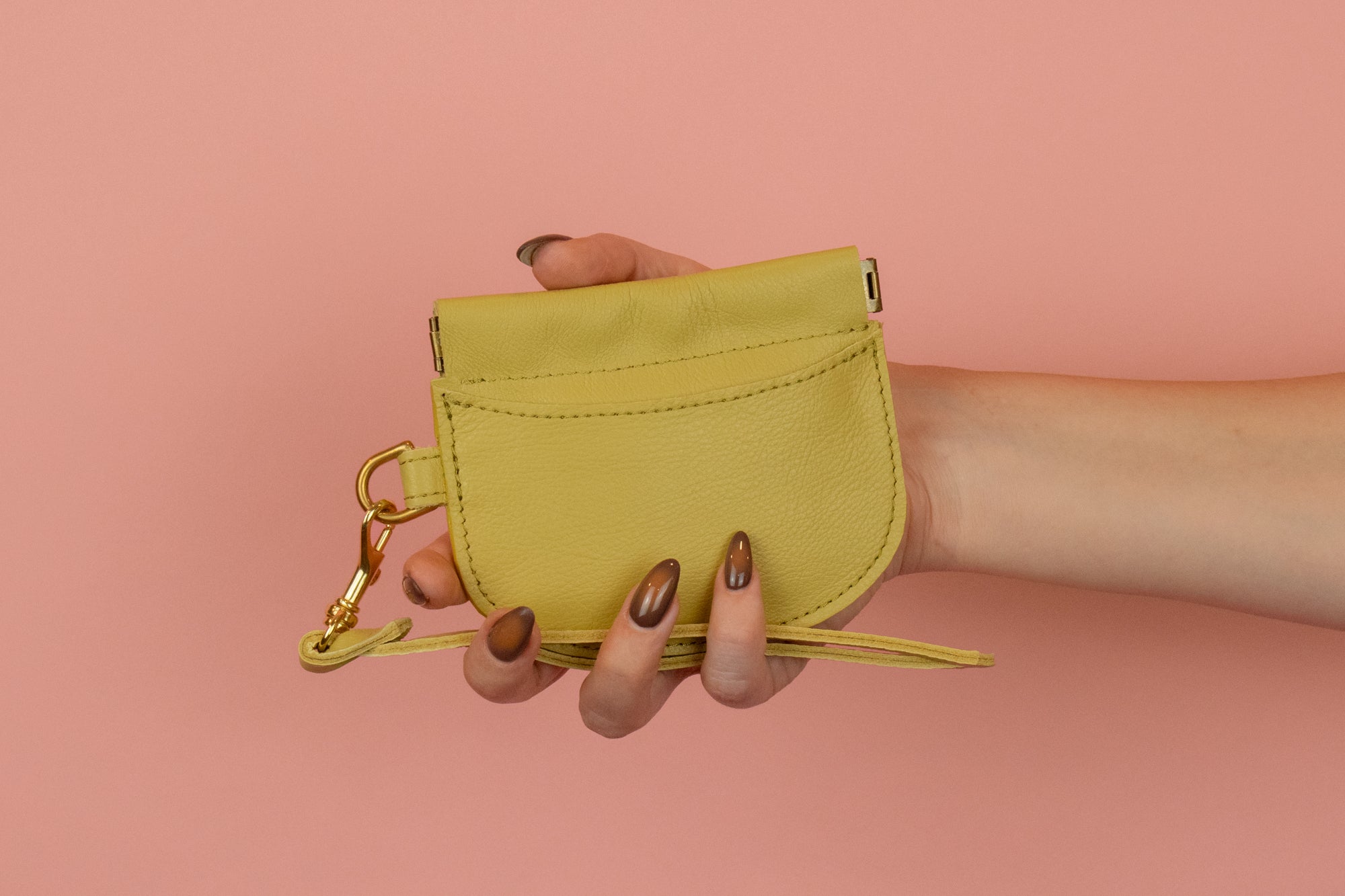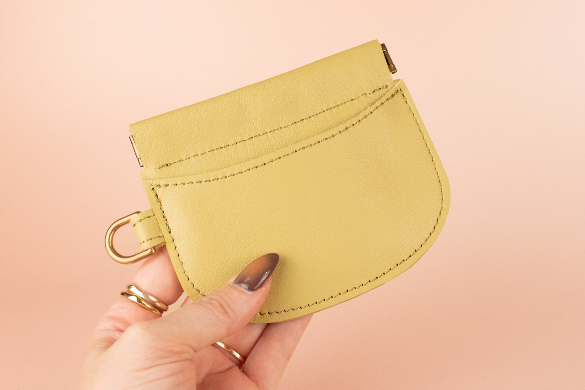 Tiny purse? Back pocket? Hands free? Our Pop Card Wallet works for all of these! Carry this leather card wallet in your tiniest bag or attach a wristlet and go hands free. It has a front pocket that is perfect for your most reached-for cards and an interior compartment that fits cards, cash, coins, and even a lip balm or a tampon. The squeeze-snap pops open easily, but closes tightly to keep your small things secure. There's no losing your valuables on our watch!