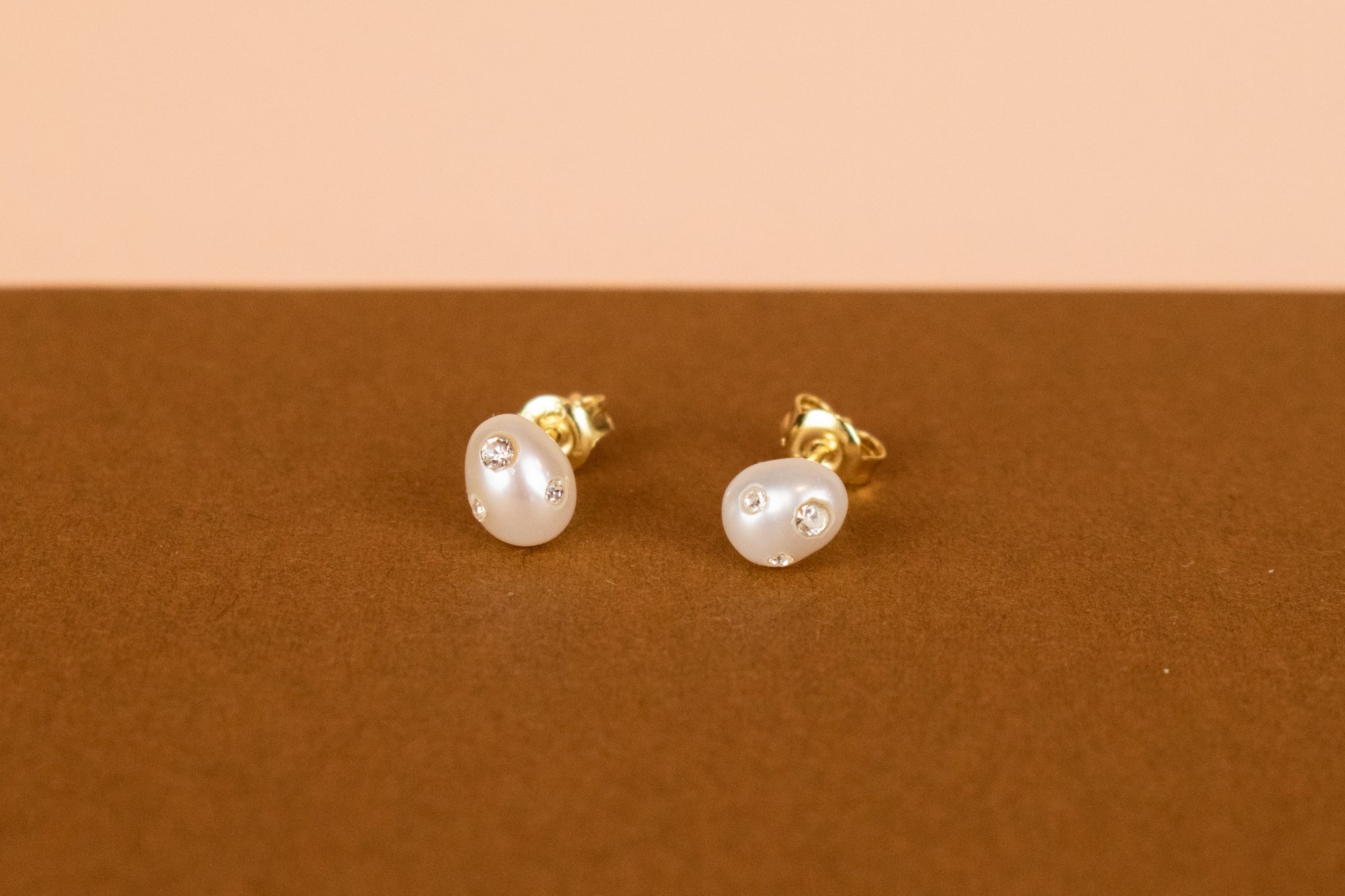 The Aura Studs: Aretes con piedras preciosas de cristal y perlas doradas