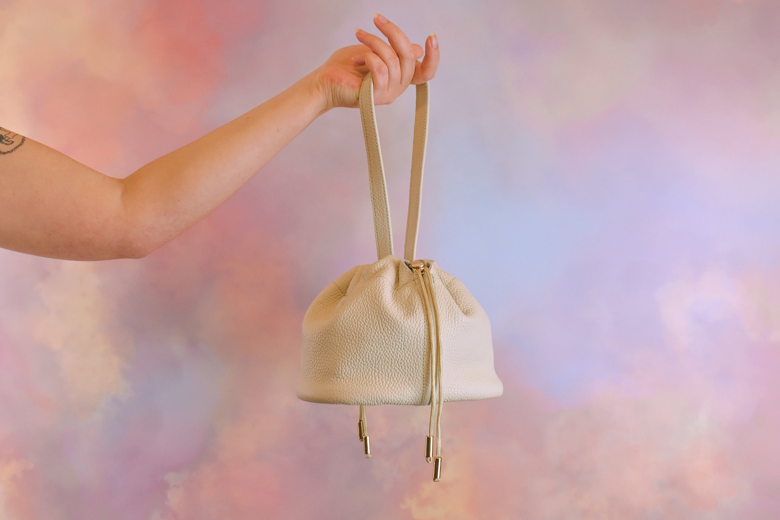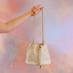 Le Duo Bag : un sac seau en cuir blanc os