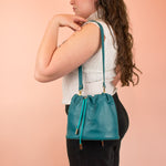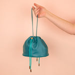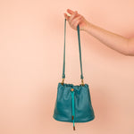Ce sac Duo comprend : 1 sac seau à cordon en cuir et 1 bandoulière amovible avec détails en laiton massif.