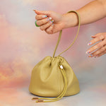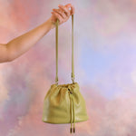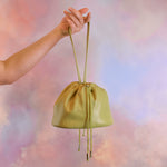 Non seulement il est assez grand pour contenir votre portefeuille, votre téléphone, vos lunettes de soleil et de nombreux accessoires, mais ce sac seau en cuir est doté d'un cordon de serrage et d'une bandoulière à fermoir pour que vous puissiez le porter de nombreuses façons. En fait, c'est pourquoi nous l'appelons Duo ! Nos deux réglages de sangle vous permettent de le porter plus court comme un bracelet chic ou de le porter comme un sac à bandoulière ample. Ce sac à cordon est parfait lorsque vous ne voulez pas emporter à la fois un fourre-tout de jour ET un sac de soirée en vacances. Cold Gold est devenu connu pour sa polyvalence, et le sac Duo en cuir pistache ne fait pas exception.