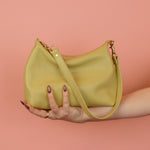 - Convertible design allows for wear as a slim shoulder bag or a slouchy crescent handbag