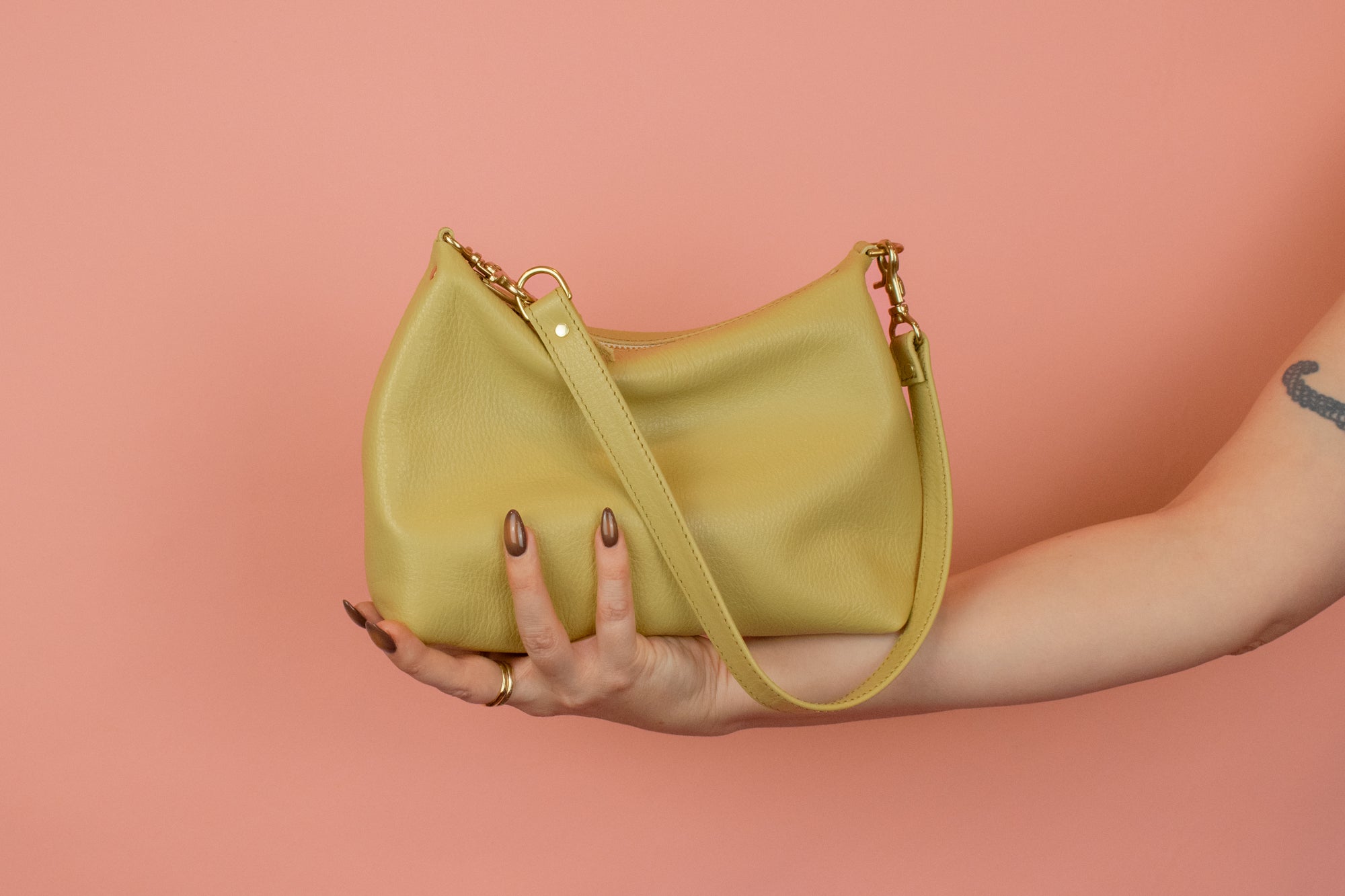 Cleaning: Spot clean your leather shoulder bag with a soft cloth and warm, slightly soapy water - make sure your cloth is damp not soggy! Polish brass hardware with a brass polishing cloth or clean microfiber cloth. Don’t have those? A clean, old t-shirt works great too.