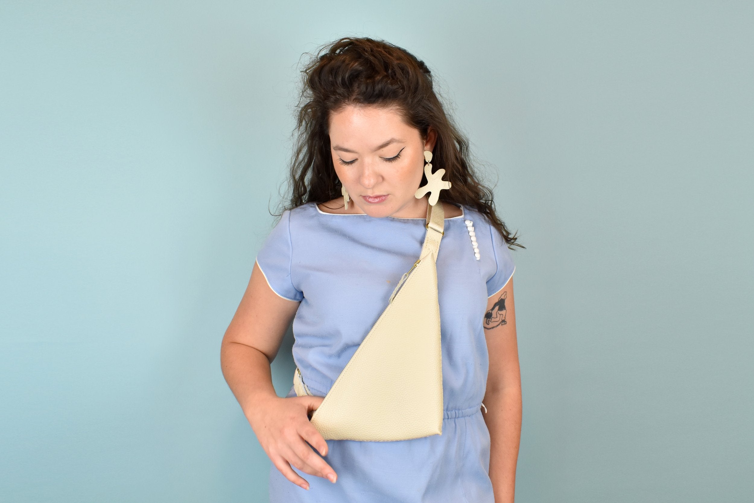 Le TriSling : un sac à bandoulière en cuir / une pochette en cuir ivoire os